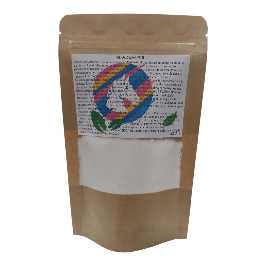 Ingrédients : Sulfate de Glucosamine (2KCI) pur, puissamment dosé, sous une forme aisément miscible. De qualité alimentaire humaine (grade food).